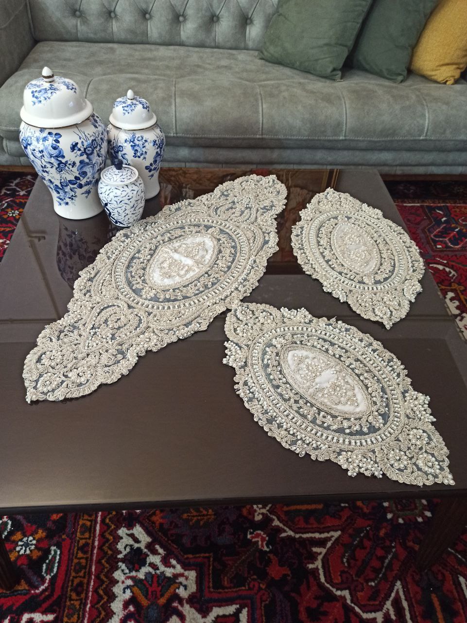 مشاهده همهتعداد تکه: ۵ تکه (۱ جلومبلی + ۲ عسلی + ۱ رانر + ۱ مربع)