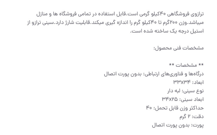 ترازو فروشگاهی قابلیت وزن 200گرم تا 40کیلو گرم